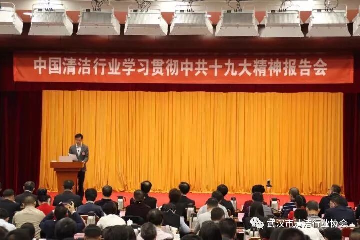 2017年11月18日,中国清洁行业学习贯彻中共十九大精神报告会,在天津大礼堂国际厅召开。