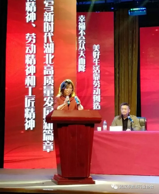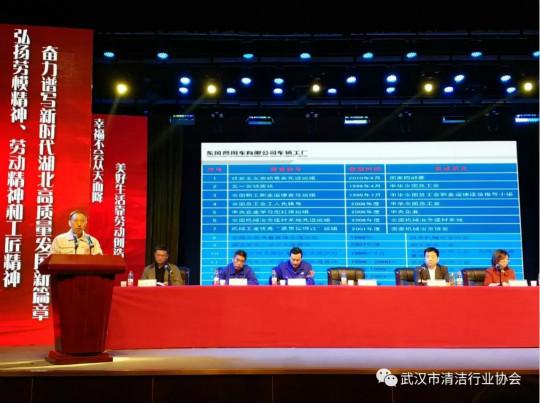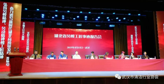 4月15日下午,湖北省、武汉市总工会组织的“湖北省劳模工匠事迹报告会”在武汉工人文化宫职工剧场举行,这是该劳模工匠报告团省市巡讲的第一站,武汉爱洁环境管理发展集团有限公司、武汉克林物业管理顾问有限责任公司、武汉登峰物业管理服务有限公司、武汉鑫连鑫物业管理有限公司、武汉施普林物业管理有限公司、武汉新朗物业管理有限公司、武汉绿弛物业服务有限责任公司、武汉华美佳物业服务有限公司、武汉中楚物业股份有限公司等武汉市清洁行业协会会员单位职工代表近60人参加了此次会议。会议由武汉市总工会副主席黄湘武主持。