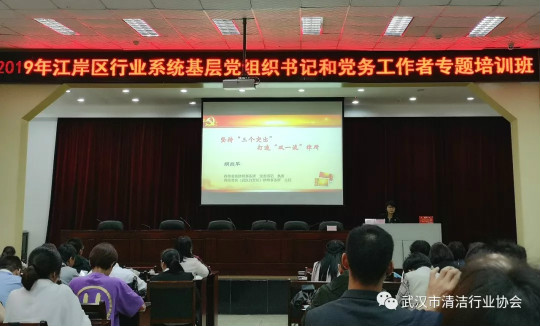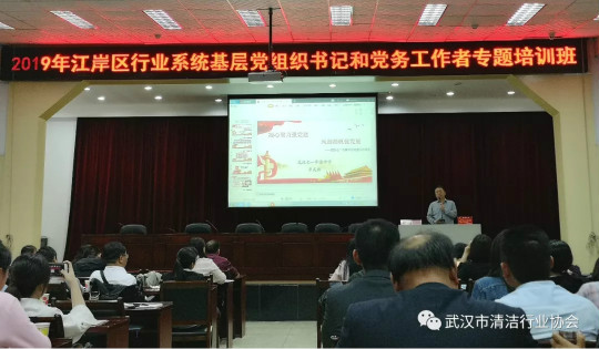 2019年5月15日,江岸区行业系统基层党组织书记和党务工作者专题培训班在江岸区委党校成功举行,武汉市清洁行业协会参培人员与全区互联网企业、律师事务所、物业企业、民办学校、民办医疗机构、社会组织等6个行业系统基层党组织书记和党务工作者共同参与了此次学习。